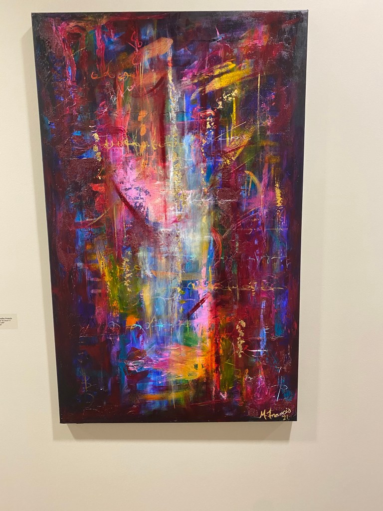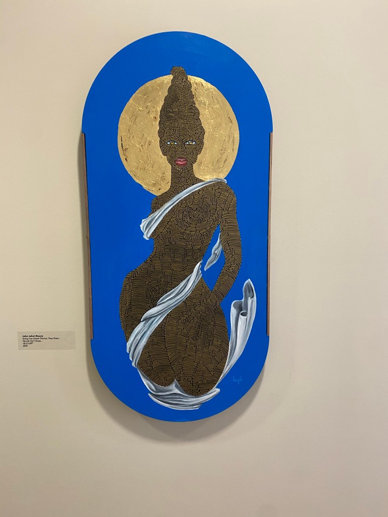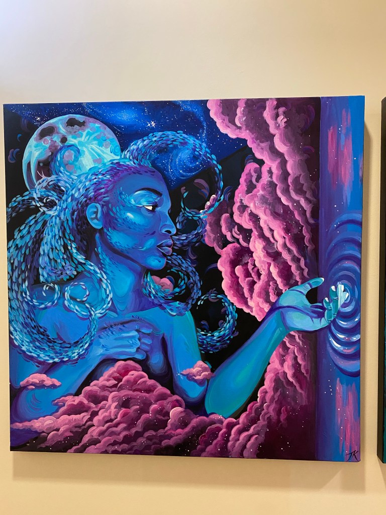 Opens up spaces for the mind to contemplate its contents in the context of Afrofuturism. Thompson’s Gold Coast Records embeds silent sonic presence for the viewer. Myesha Francis and Kennedi Andrus’ lush uses of color and brush stroke evoke the beauty of the heart as it’s own form of consciousness.