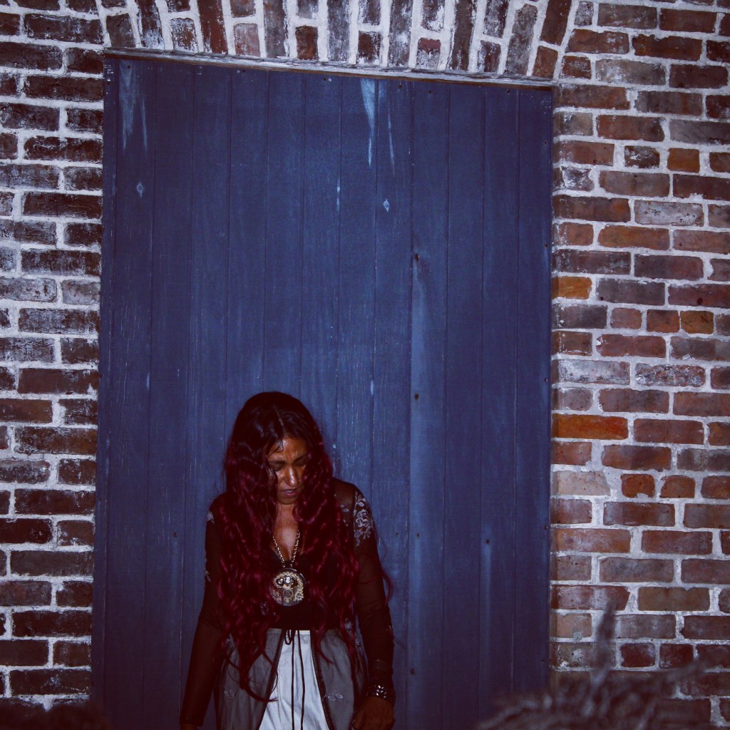Maryam de Capita is a persona I embody at her will. Maryam lives in Capita, Republica, the capital city of a free Black republic on the Gulf coast of North America. Her last name comes from the Latin, “per capita” or “by the head.” In part, her family line includes refugees of the Haitian revolution accepted in the Louisiana colony, who were called “heads.” She is also a citizen of the Bambara and Natchez nations. Her last name also refers to those rebels who were captured and beheaded by the Americans during the uprisings, as well as to the practice of burying the heads of priests and holy men separately from their bodies to protect their knowledge.